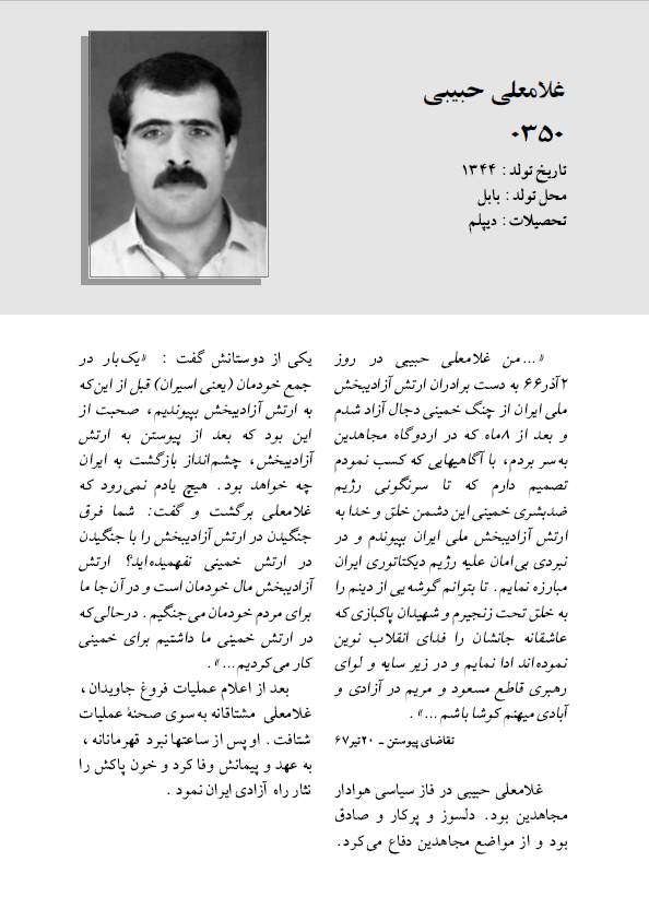 را در سازمان خونبار مجاهدين يافتم، بدان پيوستم. شناخت سازمان و راه و هدفهای آن بعد